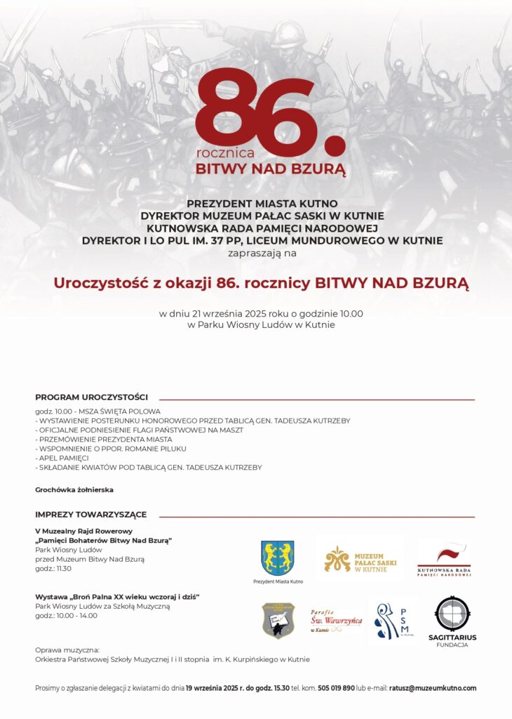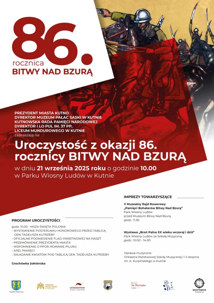 Muzeum Pałac Saski zaprasza na uroczystości poświęcone 86. rocznicy Bitwy nad Bzurą, które odbędą się 21 września 2025 r. w Parku Wiosny Ludów. Początek uroczystości o godz. 10:00.