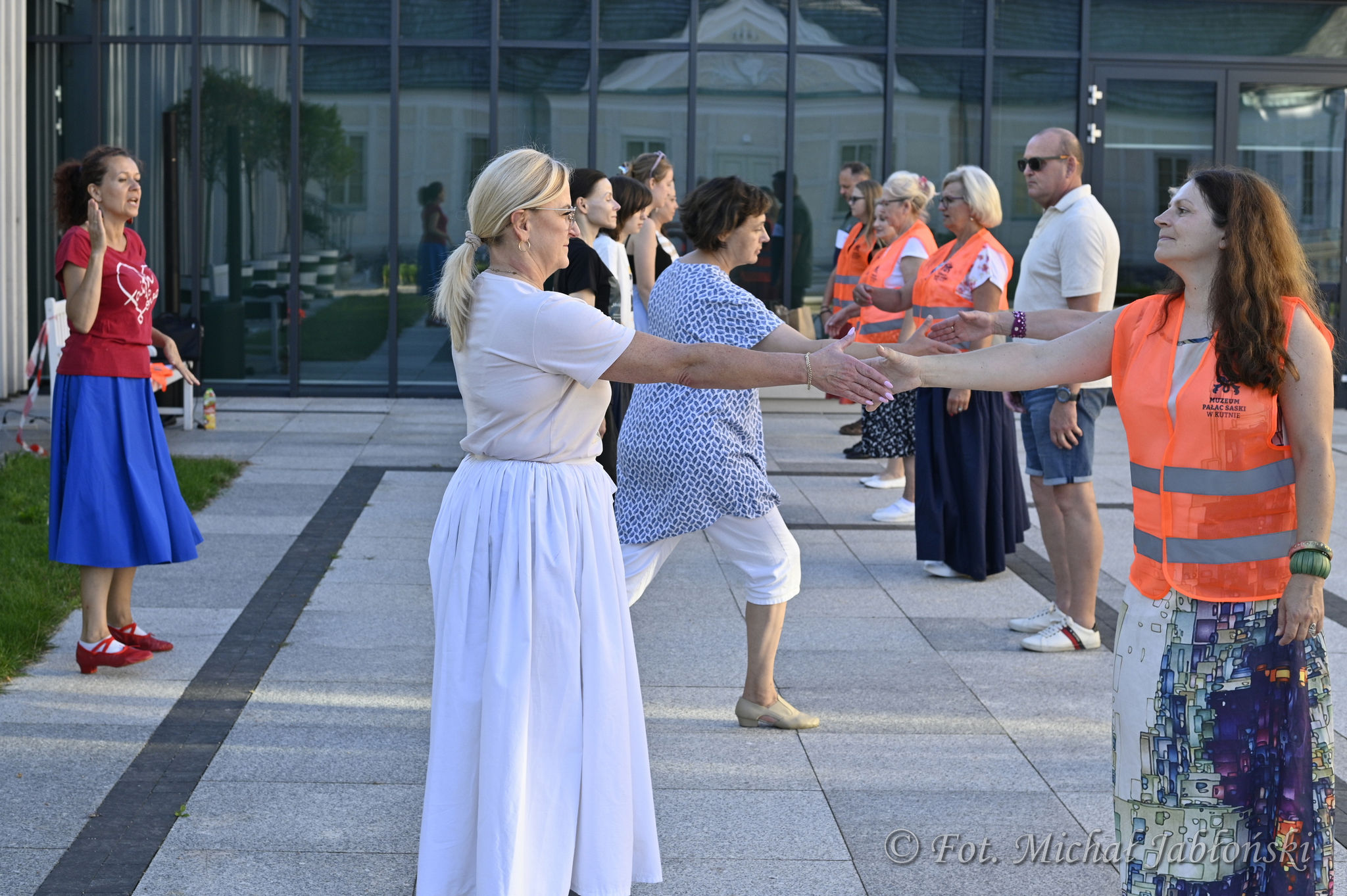 Wczoraj(13.08.) odbyły się kolejne warsztaty z cyklu „Saska Szkoła Tańca”. Zajęcia poprowadziła Anna Ilczuk, a tym razem obecni uczestnicy mieli okazję zapoznać się z kontredansami – to już drugie spotkanie z tym konkretnym rodzajem tańca.