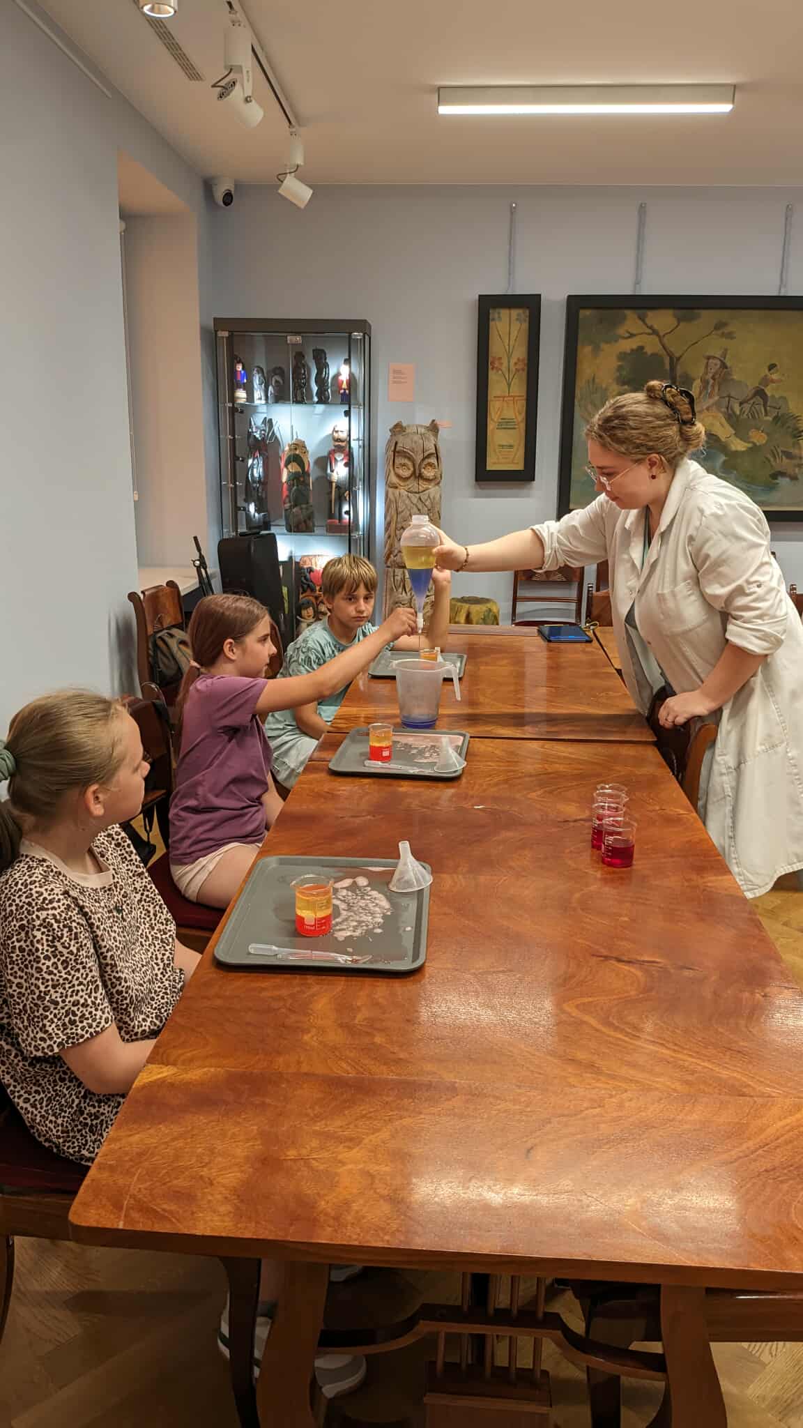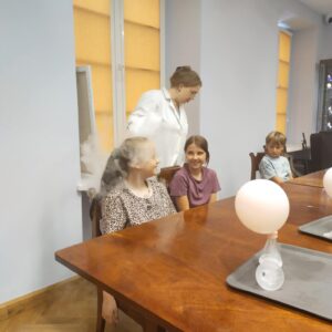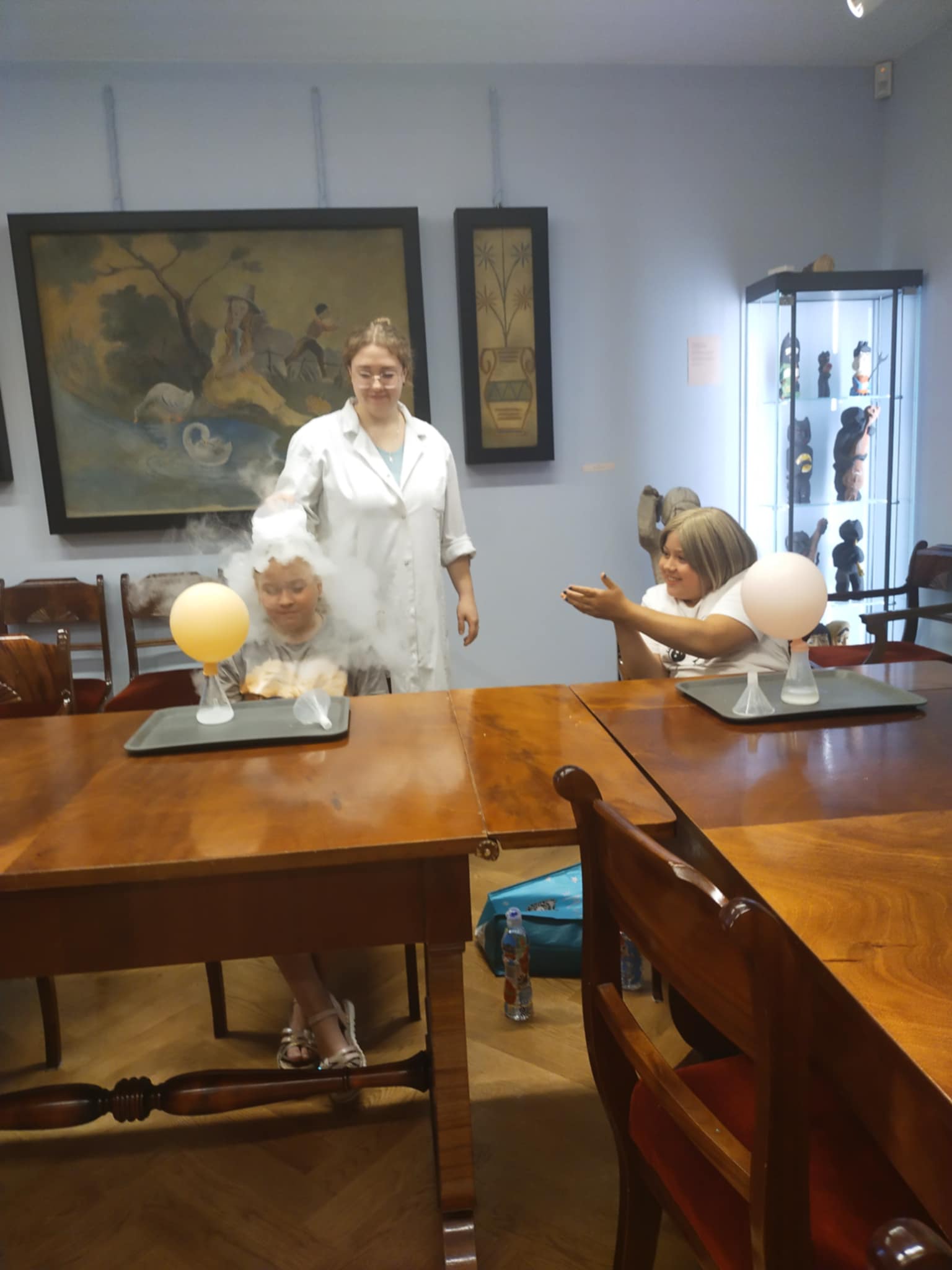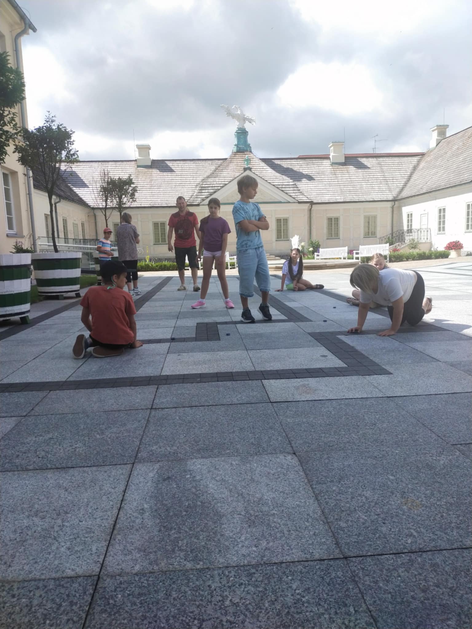 Ależ ten tydzień obfitował w atrakcje! W Pałacu wystartowaliśmy z pierwszym turnusem wakacyjnych warsztatów. Mali odkrywcy nie tylko doświadczali zabaw na świeżym powietrzu, ale też testowali swoje zdolności manualne. Wykonywali alchemiczne eksperymenty, wcielali się w malarzy oraz samodzielnie tworzyli kolorowe, pachnące kule do kąpieli. Kulminacją tygodnia była żywiołowa zabawa taneczna! Dodatkowo każdego dnia uczestniczyli w zabawach ruchowych, niczym z PRL-owskich podwórek.