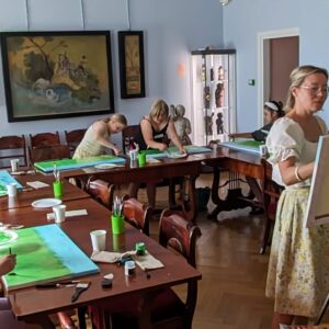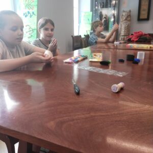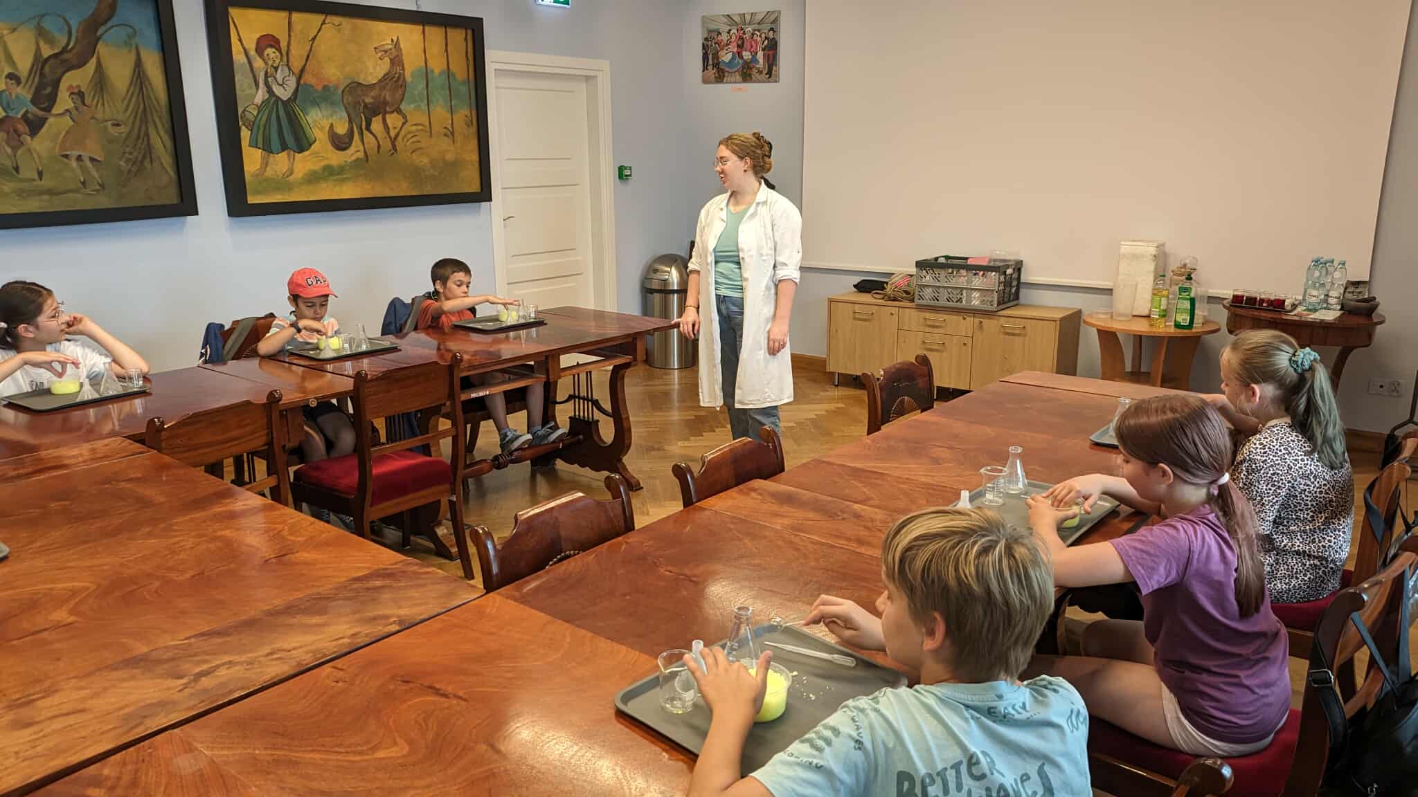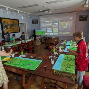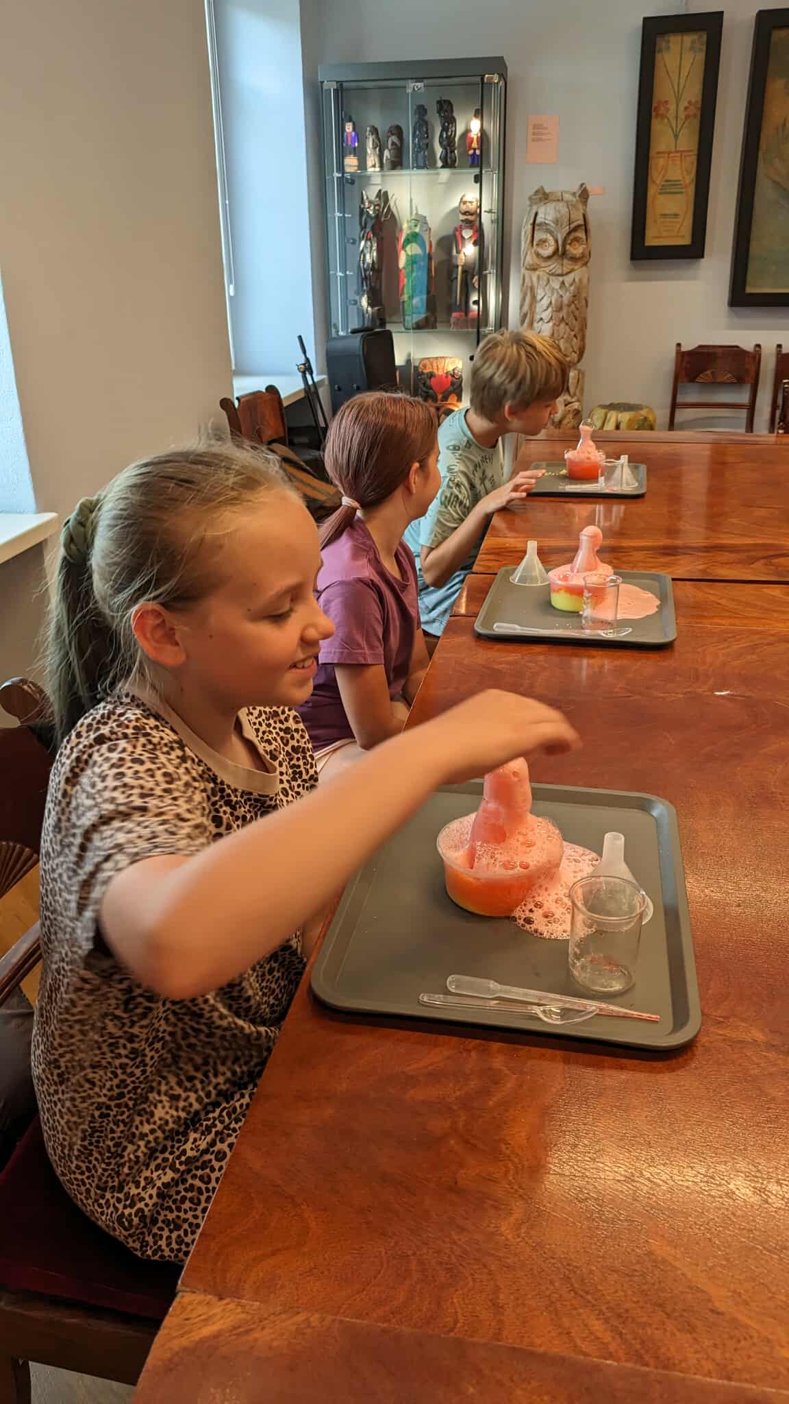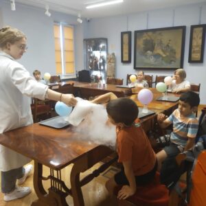 Ależ ten tydzień obfitował w atrakcje! W Pałacu wystartowaliśmy z pierwszym turnusem wakacyjnych warsztatów. Mali odkrywcy nie tylko doświadczali zabaw na świeżym powietrzu, ale też testowali swoje zdolności manualne. Wykonywali alchemiczne eksperymenty, wcielali się w malarzy oraz samodzielnie tworzyli kolorowe, pachnące kule do kąpieli. Kulminacją tygodnia była żywiołowa zabawa taneczna! Dodatkowo każdego dnia uczestniczyli w zabawach ruchowych, niczym z PRL-owskich podwórek.