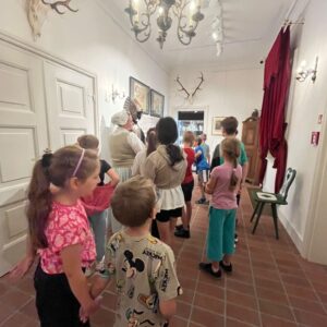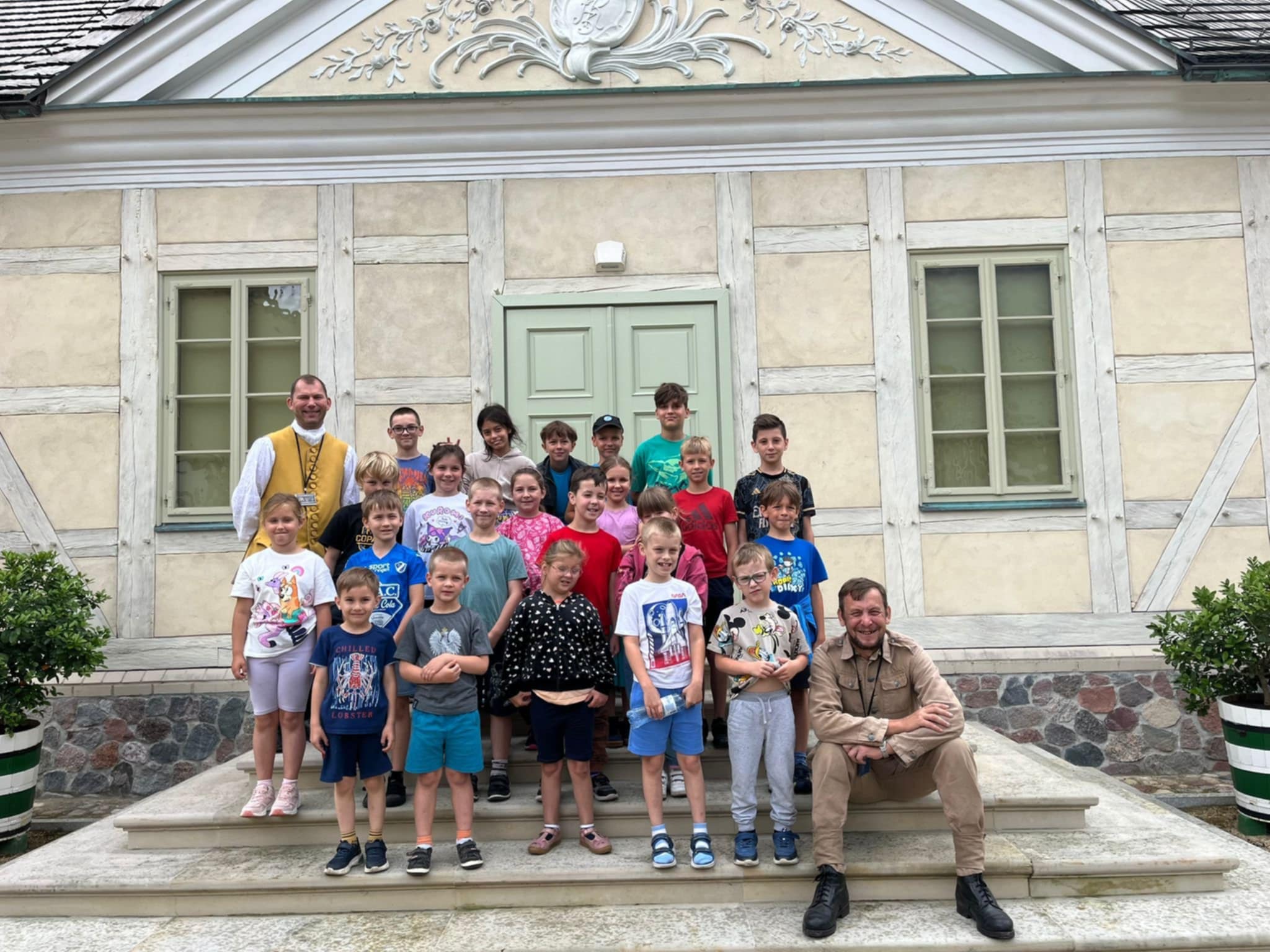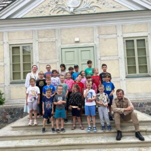 Oprócz zajęć wakacyjnych w Pałacu codziennie gościmy zwiedzających z całej Polski. W środę mieliśmy jednak wyjątkowy gość – Leo Market wraz z grupką dzieci, które poznały historię pałacu i naszego miasta.